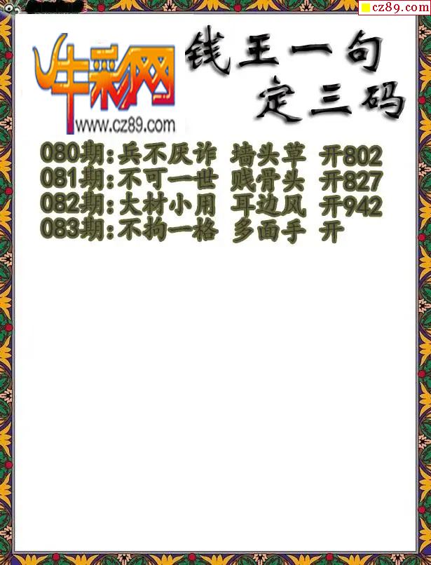 > 福彩3D2026083期钱王一句定三码字图谜