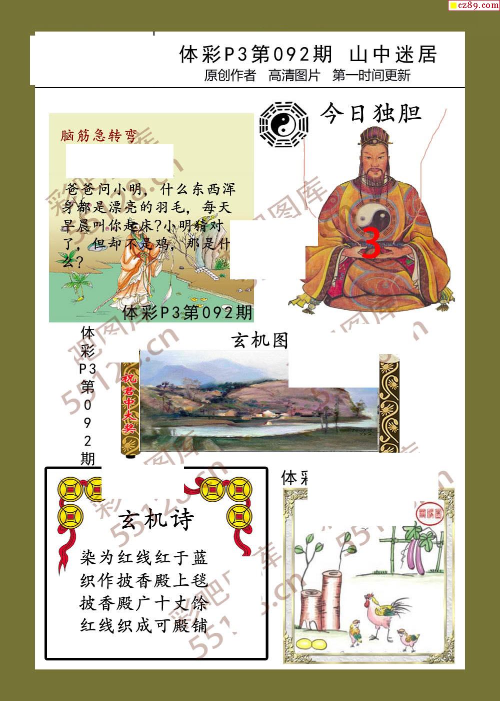 山中迷居092期体彩p3图谜